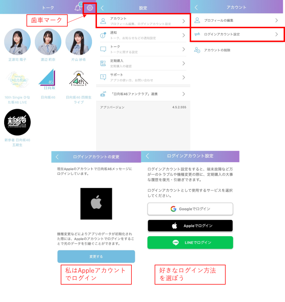 ・アプリでログインアカウントを確認しよう
